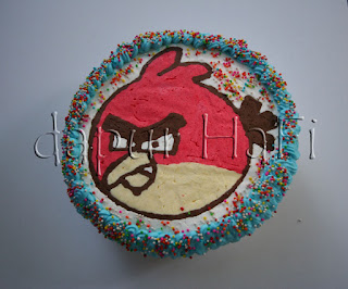 7. Rapikan, oles seluruh cake dengan krim kocok atau butter cream, hias dengan DCC serut/pagar/arabesque hingga tertutup semua. Semprotkan butter cream, hias dengan cherry merah.